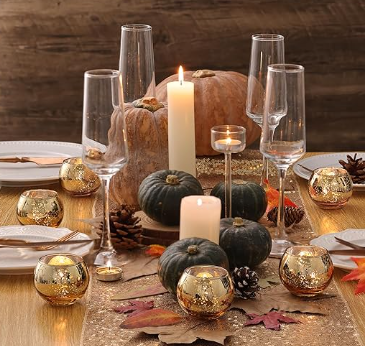 Flameless votives are perfect for the holiday table. They add the ambiance without the fear of being knocked over.